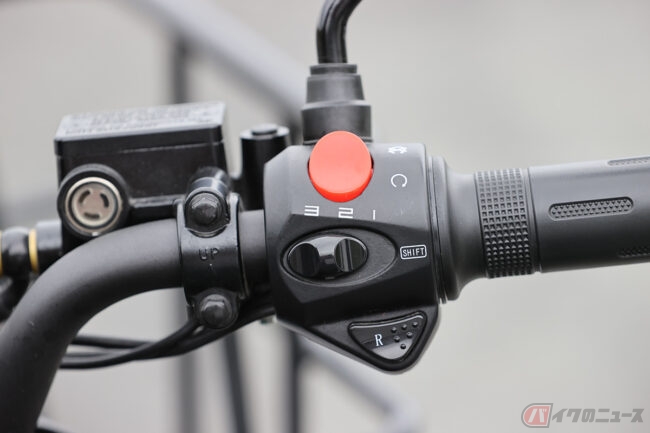 リヤボックスの重さなのか、それとも、もともとこのVS1が持つ重量バランスなのか、その不安感がありませんでした。だから安心してアクセルを開けることができ、緊張なく気持ちのいい加速感を味わうことができるのです。この出力についても、過敏すぎない操作性のよさがあります。ちなみに走行モードは1(エコ)、2(ノーマル)、3(スポーツ)で、それぞれに最高速の上限があり、出力自体は変わりません。
