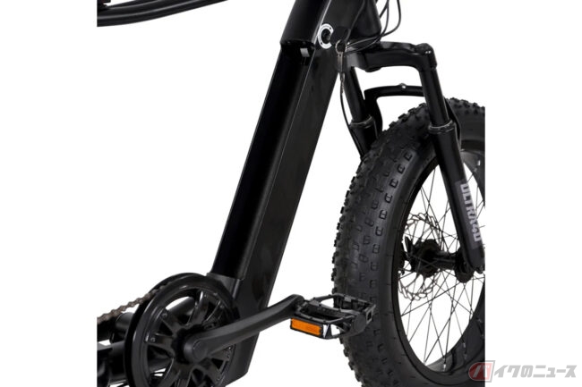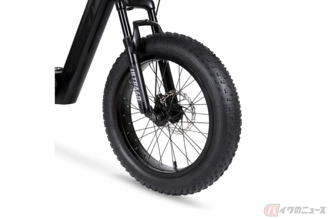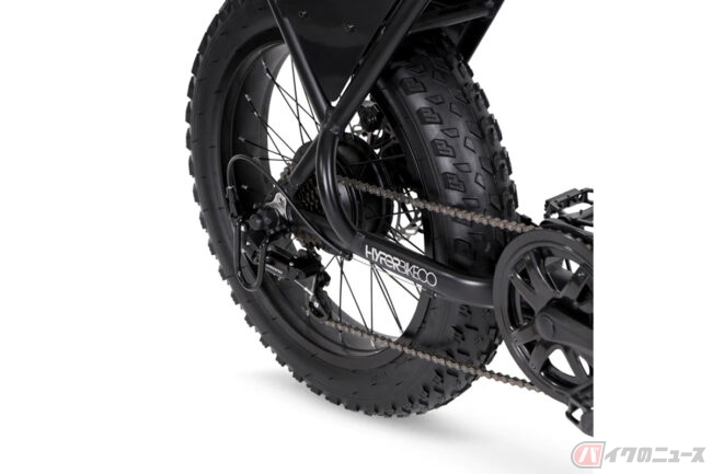 フレームに収まるフラッシュマウントバッテリーを採用したHyper Ultra 40 E-Bikeでは、トレイルやサイクリングロードを走行する際にトラクションと快適性を生み出す20インチ×4インチのファットタイヤを採用。
