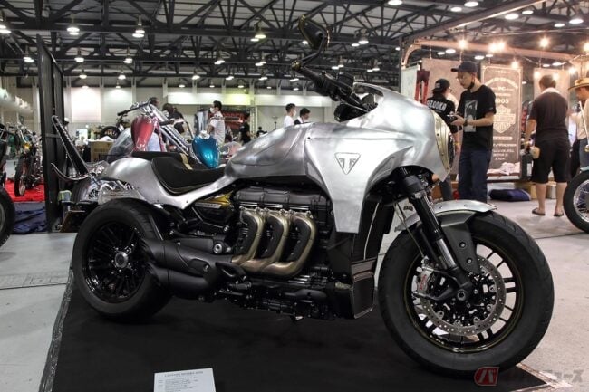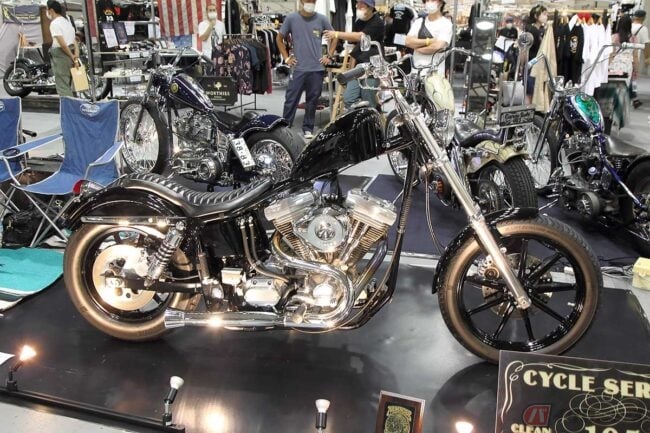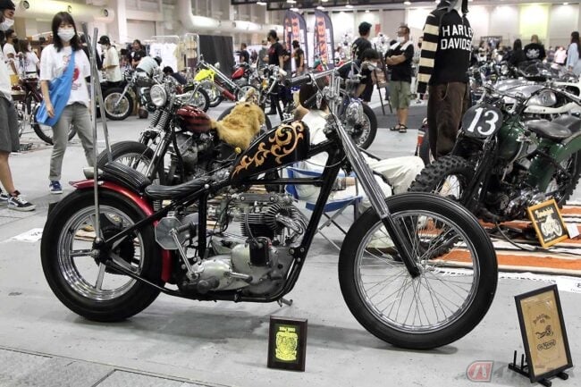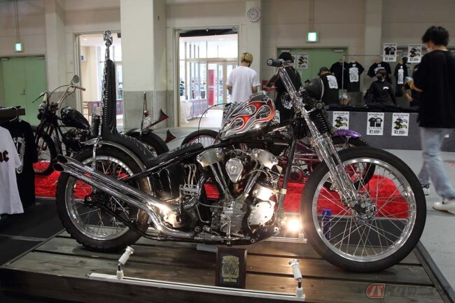 またショーといえば展示されるカスタムバイクが主役であり、多くの観客の皆さんが展示車両を眺め、楽しむのが本筋なのですが、主催者であるバイクショップのコアマシーンの清水重貴氏によると「今年は出展バイクの数も過去最高だった」とのこと。ショーの冠どおり“チョッパー”はもちろん、カフェレーサーやボバー、クラブスタイルのカスタムやバガーなどが会場を埋め尽くし、多くの人が楽しんだ様子です。