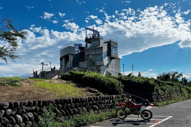 ちょっとしたワインディングを駆け上がって到着したのは、神奈川県随一の夜景の名所、定番のデートスポットでもある「湘南平」です。ということで筆者もバイク女子と待ち合わせ、もちろん取材ですが……。