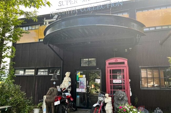 大分県由布市湯布院町にある『岩下コレクション』を訪れました。ここは国産や海外製の稀少な車両が200台以上も展示されている複合博物館です。オーナーの岩下洋陽氏が約40年をかけて集めてきた貴重なバイクや、昭和レトロアイテムは必見です。