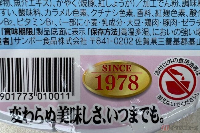 佐賀県に本社を構えるサンポー食品の「焼豚ラーメン」は、1978年に誕生した歴史あるカップ麺だそうです。公式ホームページを見ると、袋麺「サンポー軒」が発売開始されたのが1965年、いまのように全国でとんこつ味が浸透してはいなかったであろう時代に、豚骨ラーメン発祥の地、久留米のラーメンの美味しさを多くの人に味わってほしい、という意味で生み出されたものだそうです。カップ麺もすでに44年の歴史があるとは知りませんでした。