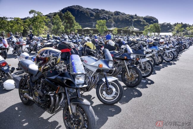 広大な駐車場が、新旧カタナで埋め尽くされている姿は圧巻。リアルイベントはじつに3年ぶりの開催、「カタナミーティング」です!