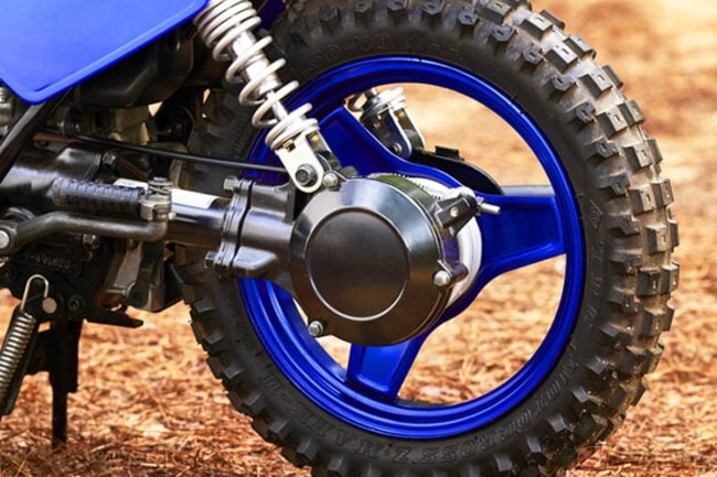 排気量49ccの空冷2ストローク単気筒エンジンを搭載するPW50は、車両重量41kgと軽量で、始動はシンプルなキック式を採用。燃料タンク容量は2Lという仕様になっています。
