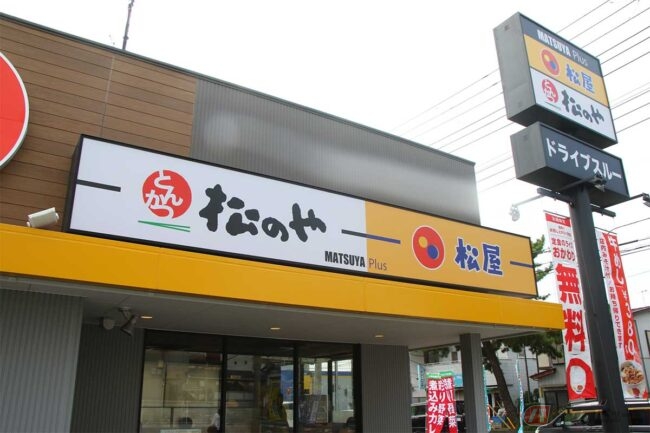 ということで、期待を胸に「松のや・茅ヶ崎赤松町店」に行ってきました。店頭に立ち、まずビックリしたのが「松屋」と「松のや」がひとつの店舗だったことです。併設されていることは分かっていたのですが、まさか一枚看板とは思いませんでした。
