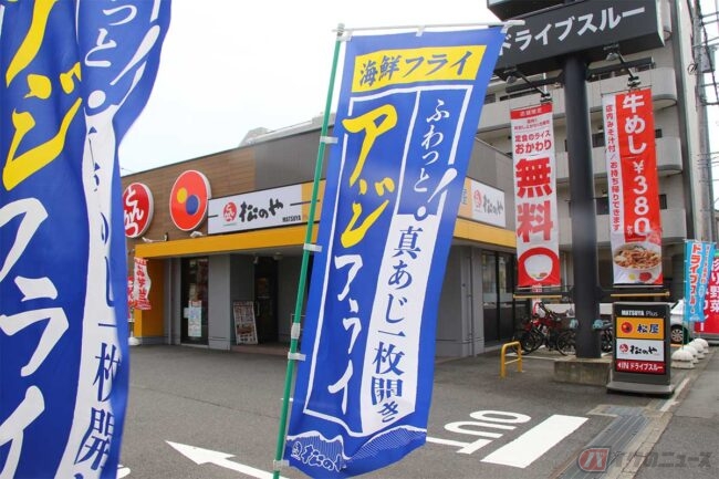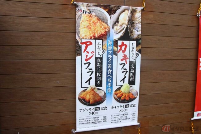 そこで「松屋」と「アジフライ」で検索してみるとヒットしました。松屋を展開する「松屋フーズ」は、「松のや」というとんかつ店を全国展開しています。この「松のや」が、2022年9月より「アジフライ」と「カキフライ」の海鮮フライを提供するとのこと。SNSで実施した海鮮フライアンケートの結果、「アジフライ」と「カキフライ」がレギュラーメニューの「海老フライ」とほぼ同率の人気だったそうです。