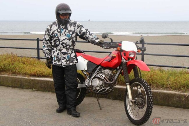 ここでYさんと分かれ、筆者はサザンビーチで一息つきます。予報通り雨が降ってきましたが、慌てずに新調したKADOYAのレインウエア「K’S RAIN T-4」を着ます。革ジャンに合わせた型でかなり余裕がありますが、腰と腕のストラップでバタつきを抑え、ベンチレーションと防水透湿素材の「東レ・ブリザテック」の採用で着心地も良いです。ブーツは防水透湿の「GOLDWIN Gベクター GWM X-OVERブーツ」なので雨でも問題無し。筆者のお気に入りアイテムに身を包み、雨の中を走って帰路につきました。