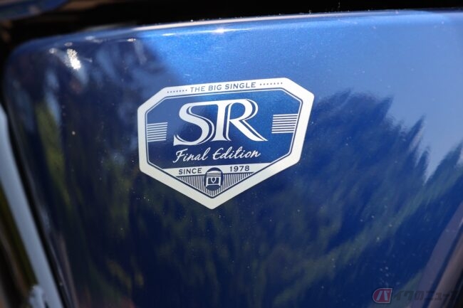 そんなSR400の生産終了に伴って、「SR400 Final Edition」と「SR400 Final Edition Limited」が用意されました。SR400 Final Editionは、新たにツートーングレーとソリッドブルーの2色のカラーリングをラインナップ。それぞれグラフィックやサイドカバーのロゴが異なり、グレーはタンクに、ブルーはサイドカバーに「Final Edition」の文字が刻まれています。