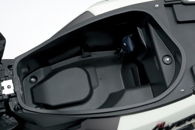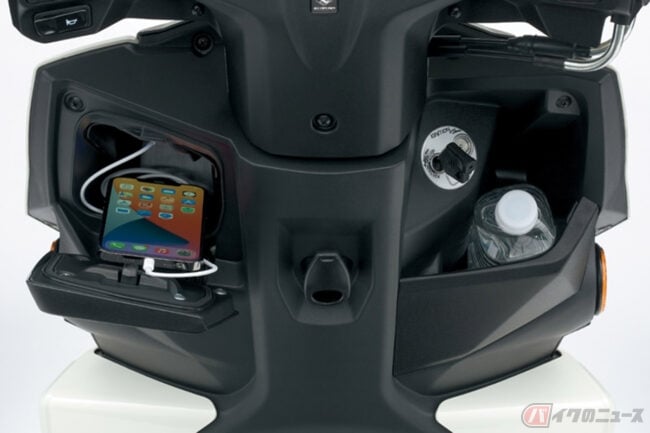 また、アヴェニス125ではシャッター付キーシリンダーやUSBソケット、ふた付きの左フロントインナーボックスなどを備えることで利便性を高めています。