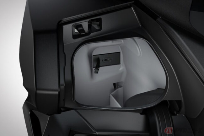 150mm可動するスクリーンやコンソール内USBソケットやボトルホルダー、バイクと音声でつながるホンダ・ロードシンク(一部モデルのみ)など、機能性に飛んだ装備が奢られています。