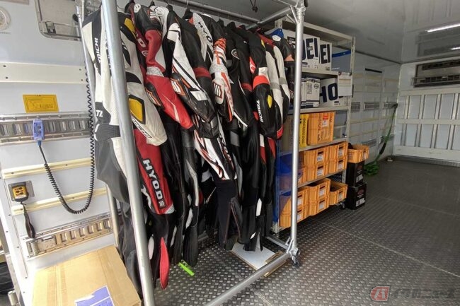 パラモトライダーさんが着用しているヘルメット・ライディングウエア等はすべてSSPから借りる事ができ、様々なサイズが用意されていました。
