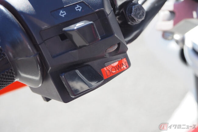 シフト操作は、左手のハンドルに取り付けられたスイッチの上下で行い、もし万が一の際にはリモコンでエンジンがストップできるような仕組みになっています。