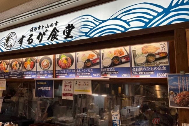 天気の良い日中には駿河湾を一望できる新東名高速道路「NEOPASA駿河湾沼津」(下り)のフードコートには、24時間営業の「海の幸と山の幸 するが食堂」があります。夜中にバイクで移動中、お腹を空かして飛び込みました。