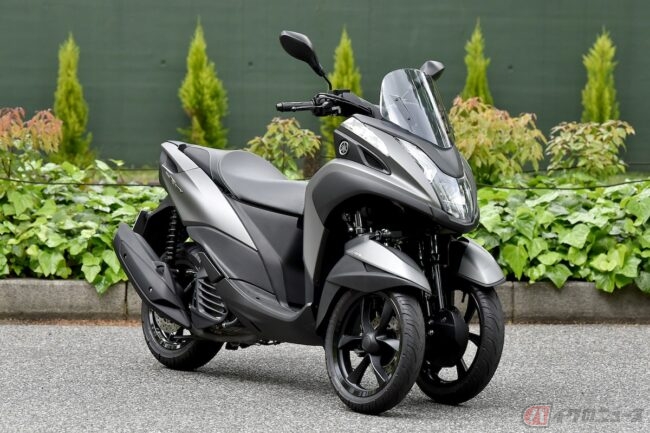 続いて6台目は、同社の「トリシティ125」をベースに、排気量を30ccアップさせ高速走行を可能にしたヤマハ「トリシティ155 ABS」で、新車価格は48万4000円です。