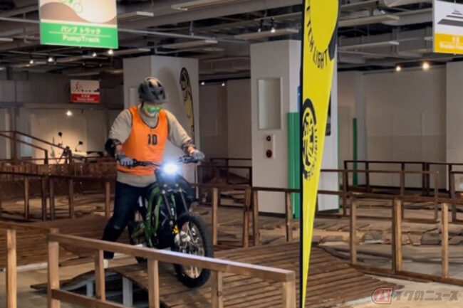 初の屋内トライアル「e-Trail Park」ってどんなコース!? クリスさんのバイク遊び