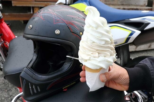 途中で右折して数分走ると「よこすか関口牧場」に到着です。ツーリングの途中でソフトクリームを食べにやってくるライダーも多いようですが、筆者は冷たいものより温かいものが好きなので、あまり食べません。夏でもコーヒーはホット一択です。