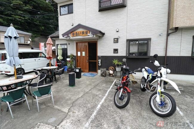 葉山町から国道134号を南下して、コメダ珈琲店や商業施設を過ぎると右側に今回の目的地「まるい食堂」があります。筆者(増井貴光)は何度か訪れたことがありますが、駐車場で待っていた『美味しいアジフライを求めて走る旅』担当編集者Zさんは初来店だそうです。