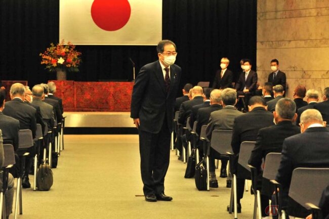 表彰状を手渡した斉藤鉄夫国交相は次のように謝辞を延べ、式が終了した後も平場で表彰者に頭を下げていました。