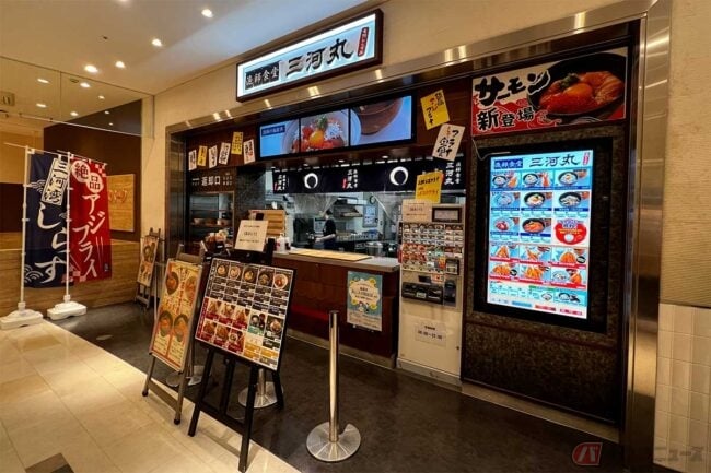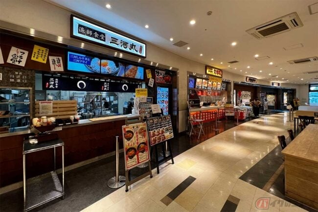 美味しいアジフライを求めて走る旅、今回は関西某所で美女とカスタムハーレーの撮影からの帰り道、給油のため新東名「岡崎SA(NEOPASA岡崎)」(上り)に立ち寄りました。時間的にはちょうど晩飯時、ついでに筆者(増井貴光)の腹も満たそうとフードコートに入ります。