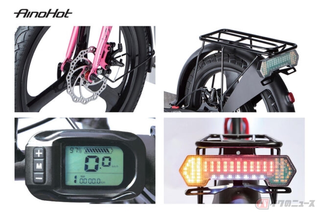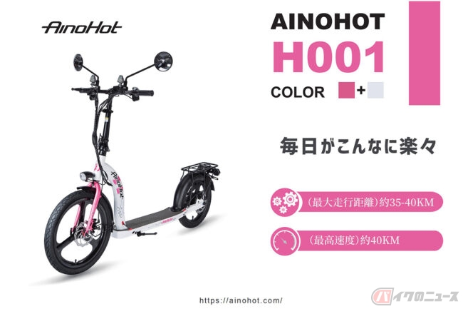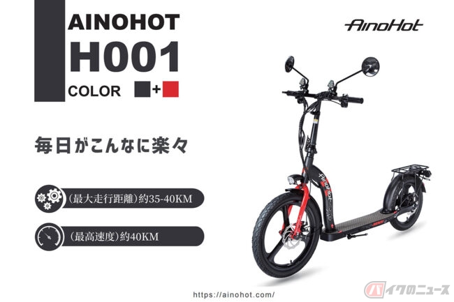 ディスクブレーキやリアキャリア、液晶モニーターを標準装備したAINOHOT H001の価格(消費税10%込)は15万8000円で、カラーはブラックとホワイトの2色が用意されています。