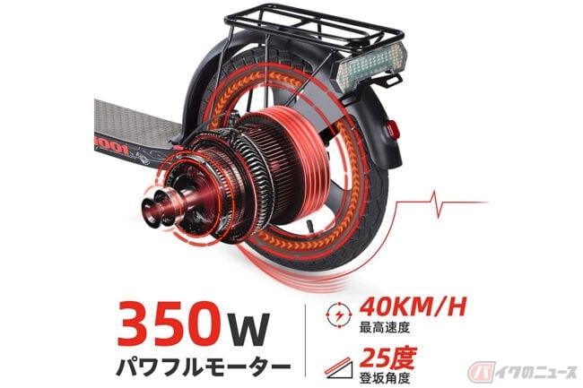 折り畳み式とすることで持ち運びも可能なAINOHOT H001は、最高速度40km/hを実現する350Wのパワフルなモーター、36V/10Ahリチウム電池を搭載したモデルで、約6時間充電充電40kmまでの走行距離を実現。