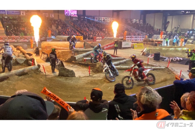 スーパーエンデューロ世界選手ドイツ開催時は、リーザSACHSENアリーナにて2日間に渡ってレースが行われました。