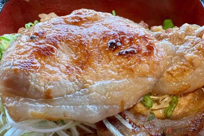 実際にいただいてみると、これがなんともまろやかな味で、豚肉の旨みが凝縮され味噌との相乗効果でご飯がススみます。しかもご飯の上に乗った3枚の豚肉は大きく、大盛り(無料)でもご飯を覆い隠してしまうほど。