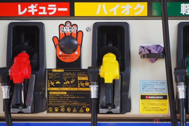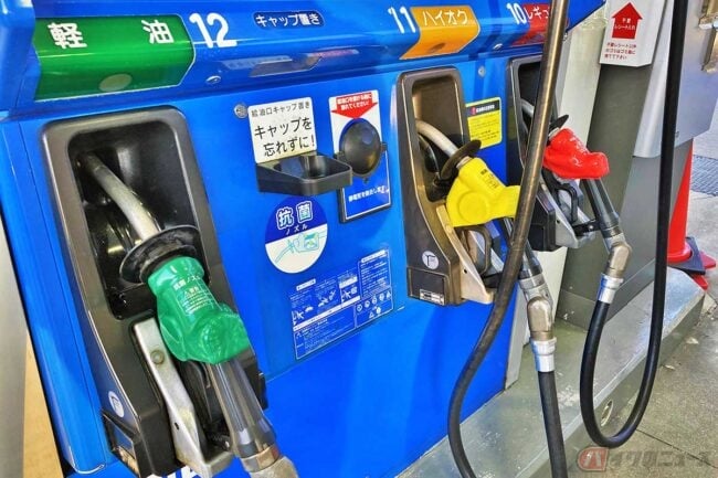 給油の際には、選択した油種のノズルを給油口の奥までしっかりと差し込み、ノズルのトリガーを引きます。給油ノズルは基本的に赤がレギュラー、黄色がハイオク、緑が軽油となっています。誤ったノズルを取った場合は、いつまで経っても給油が始まらないため、異変を感じたらノズルの種類を再度確認するようにしましょう。