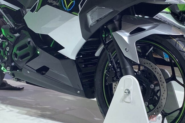 また、2024年に発売予定のハイブリッドモデル(HEV)のプロトタイプでは、カワサキ製のストロングハイブリッド型エンジン(エンジンを切って電気モーターのみでも走行可能なハイブリッドエンジンシステム)を搭載。