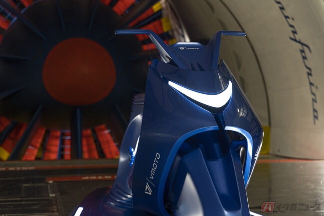 同コンセプトモデルでは、電気二輪車の性能と航続距離にプラスの効果をもたらす空気抵抗係数の低さに加え、風を利用して温度をコントロールすることで、モーターの性能の安定性にプラスの影響を与え、その結果、バッテリーの寿命を延ばすことを目的に開発。