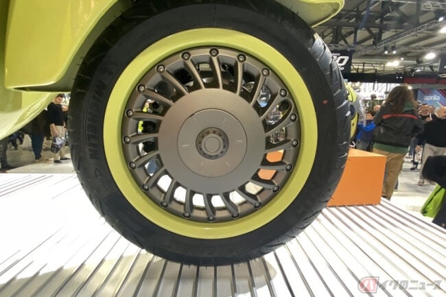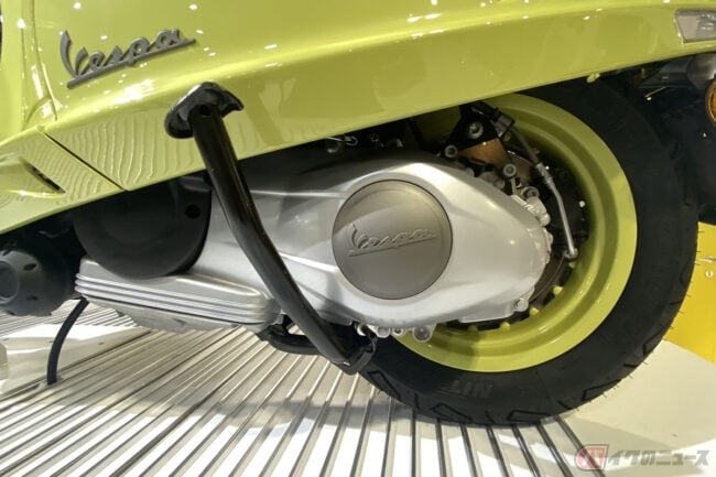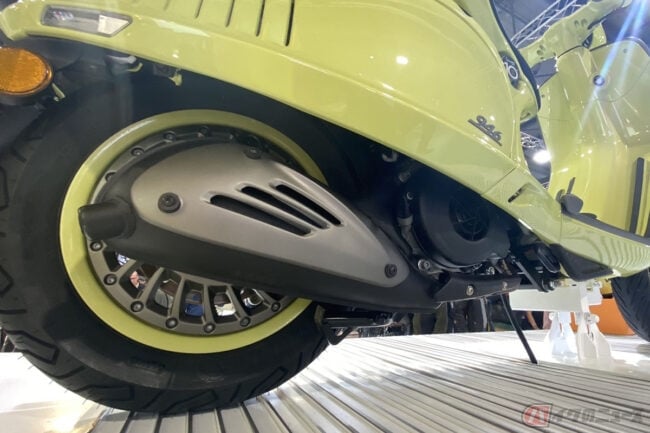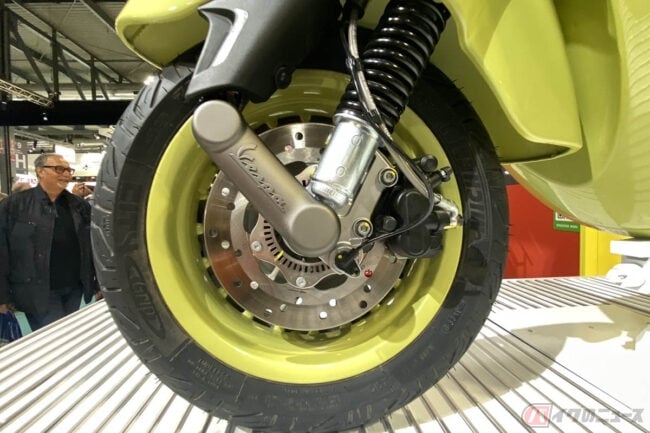 初代ベスパのドラムブレーキのラインをイメージした12インチのアルミ合金製スプリットリムホイールのほか、220mmディスクブレーキ、ABS、ASRトラクションコントロール、フルLEDライト、LCDディスプレイなど現代的な装備がおごられています。
