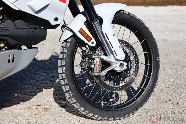 タイヤはフロント21インチ、リア18インチ。アドベンチャーバイク用タイヤでリプレイスの幅が広いチューブレスリムも採用し、ツーリングからオフロード走行を楽しむための準備も万端。