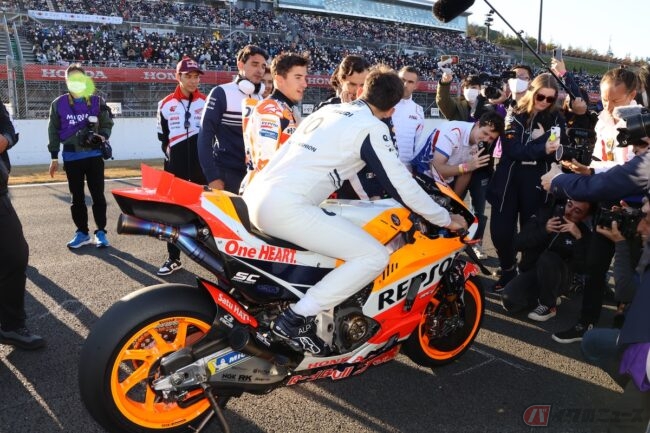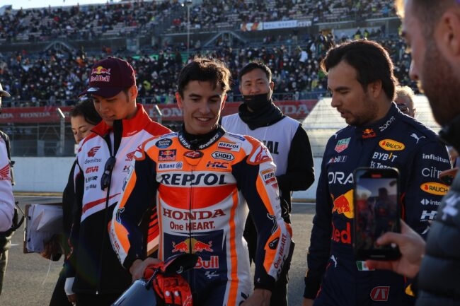 なんとなんと、マルケス選手のMotoGPマシン『213V』に、ピエール・ガスリー選手やセルジオ・ペレス選手が跨るシーンも! 報道陣のカメラが向けられっぱなしとなりました。