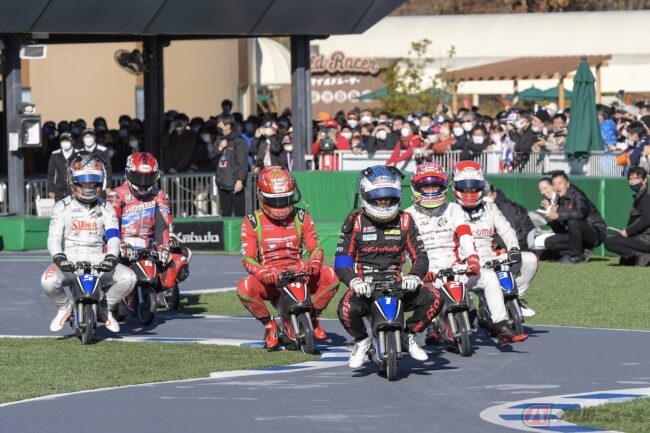 モトレーサー(電動小型バイク)やレーシングカートでガチンコバトルしたり、スーパーフォーミュラがピットストップ対決したり、ライダーやドライバーたちがリレー形式のエキシビションレースをおこなったり、子どもも大人も、バイクファンもクルマ好きもみんなが楽しいイベントになっているのでした。