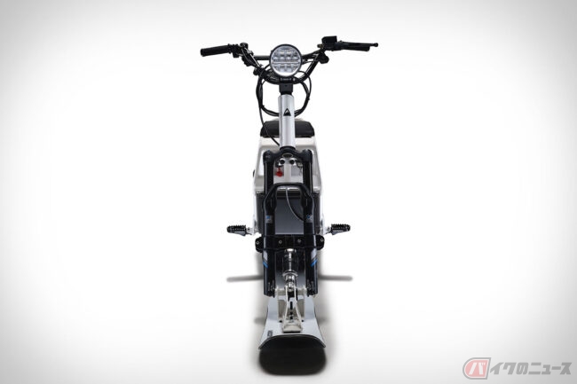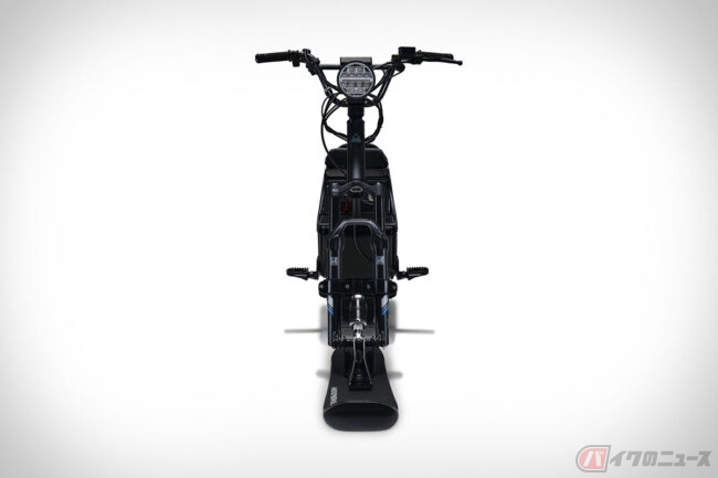 モーターサイクルの遊び心とスノーモービルの雪上走行性能を融合させたELECTRIC SNOWMOBILEは、フロントにはスキー、リアにはバイクを推進させるトラックを装備した電動雪上モデルです。