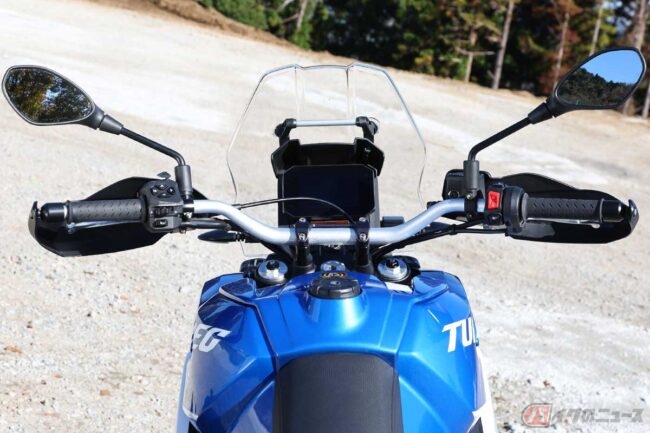 そしてTFTカラーモニターが備わるメーターパネルや、クルーズコントロールやライディングモード、各モードの設定変更を行ないやすいハンドルバーのスイッチ類など、いまやアドベンチャーバイクに欲しい項目の多くが備わっています。