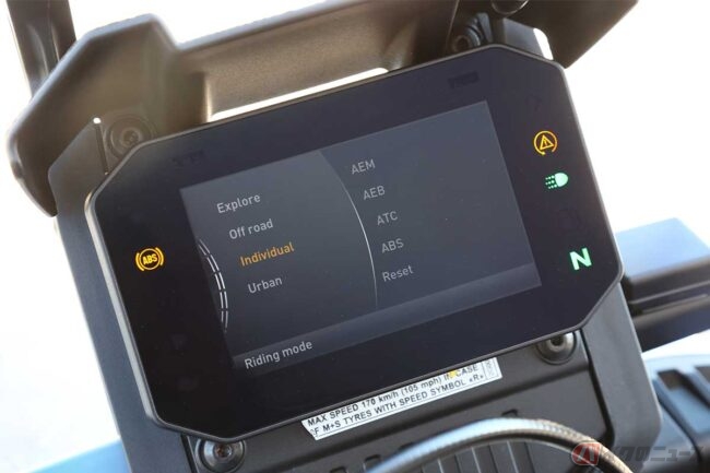 また、「アーバン」、「エクスプローラー」と2タイプ用意されたデフォルトのライディングモードでは、ややマイルドなアーバン、パワフルな走りをイメージ通りに行なえるエクスプローラーの双方を試しましたが、どちらもその特性なりにライダーがアクセルを操作できるもので、直感的なライディングにもよく合うものでした。