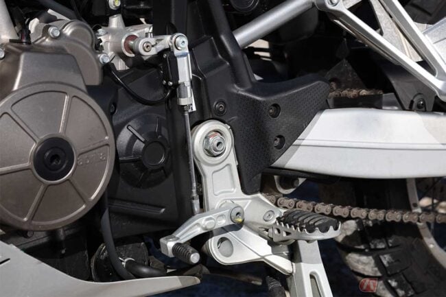 オプションのクイックシフターを備えている試乗車では、変速操作もイージーです。クラッチ操作とシフティングのタイミングはライディングの醍醐味のひとつです。突き詰めれば、ドライブチェーンの遊びも自分に合わせて最適セッティングを求めるようになるはず。ダランとたるんだ状態ではそれも台無しです。