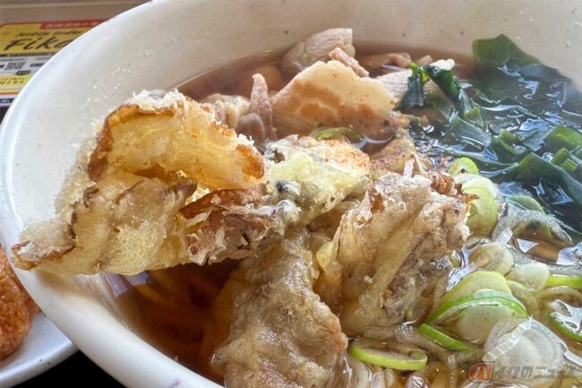 定番の「豚肉そば」に「舞茸天」も加わって、少し贅沢に