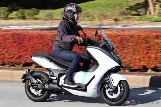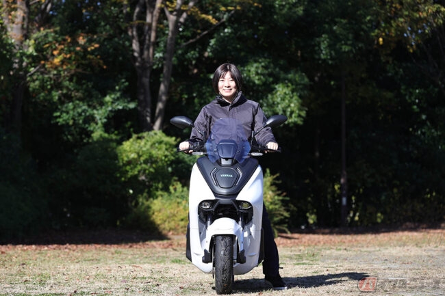 ヤマハがカーボンニュートラルを目指す実証実験の一環として、3か月間のリースをおこなっている原付2種クラスの電動スクーター「E01」に試乗しました。