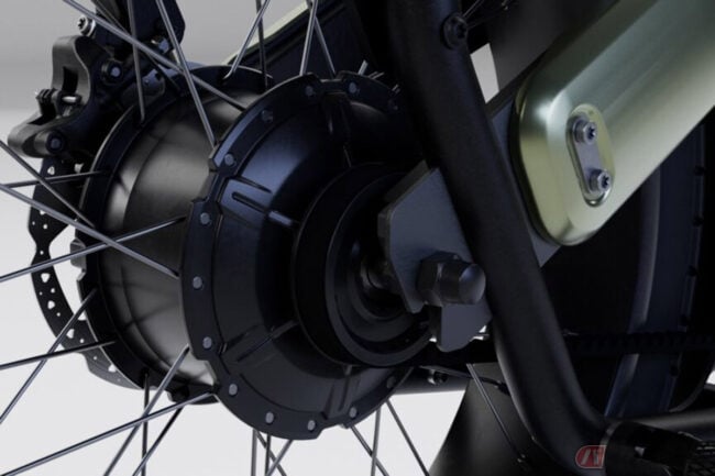 2023年秋に発売予定の新型モデルModel-Fは、Model Bを基に開発されたモデルで、前後22インチの大径ホイールを備えたモデルで、後輪にハブモーターを搭載。