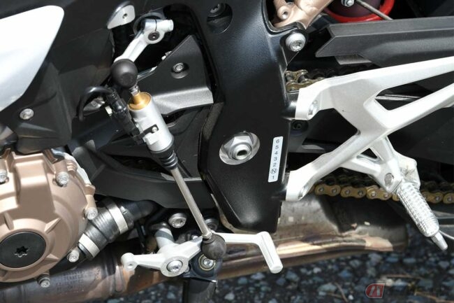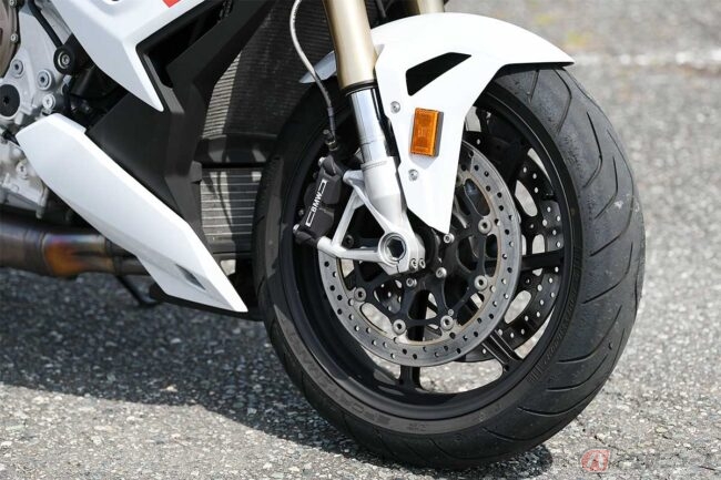 本領を発揮するのはストップ&ゴーを繰り返す市街地よりもワインディングやサーキットですから、重要度は足つき性よりも走りのポテンシャルの高さが上回るのかもしれません。とは言うものの、足つき具合は身長175cmの筆者の場合、腰をずらして片足立ちならカカトまで地面に届き、車体をしっかり支えることができます。