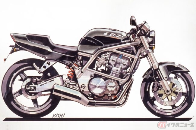 生みの親たちにも、ただただ敬服するばかりです。『CB-1』の車体に『CB1100R』の燃料タンクを載せたラフスケッチを描いたのは岸さんで、「CBブランドを強烈に印象付けるようなスタンダードなビッグバイク」としてイメージしたものが、プロジェクトBIG-1の発端となります。