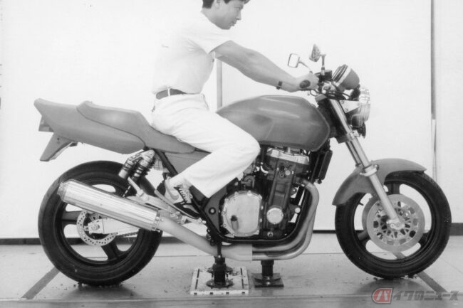 当時はV4モデルを中心に担当し、後年になって『CB1300SF』を手掛けることになる完成車テストの工藤哲也さんは、「最初に見た時は“こんなデカいの、どうするんだ!?”って思いましたが、とてもトルクフルで“太い走り”が感覚的に理解できました」と、はじめて乗った時のインパクトをこう語ります。