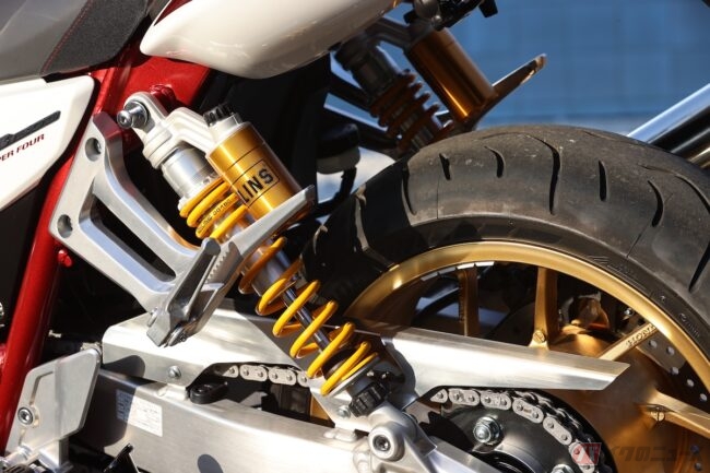 グラマラスなボディから、シャープなボディへと変身を遂げた『CB1300スーパーフォア』は、マイナス19kgの254kg。車体サイズは歴代で最もコンパクトで、ショートホイールベースとなりました。