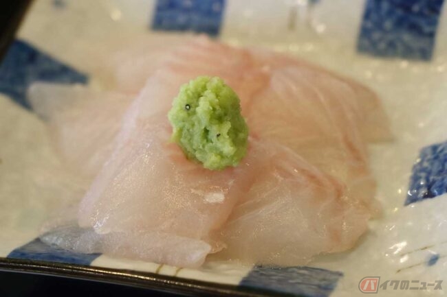 アジフライを1枚食べたあたりで、「食べたことないなら試食してみて」と、ご主人が「たかのは鯛」のお刺身を出してくれました。歯応えがあって、ちょっと甘味があり美味しいです。いままで食べなかったのが勿体無いくらいの味でした。