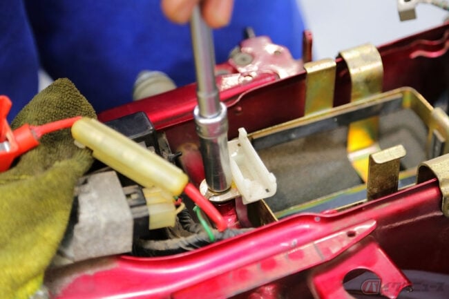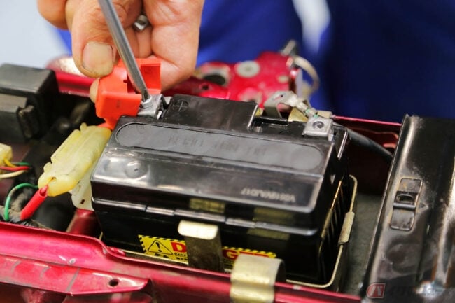 ちなみに、取り外す際はマイナス端子から。この順番は頭に叩き込んでおきましょう!!