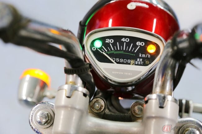 前回はエンジンをかけたら点灯したインジケーターですが、今回はスイッチを入れただけで点灯。バッテリーがしっかり働いている証拠ですね。