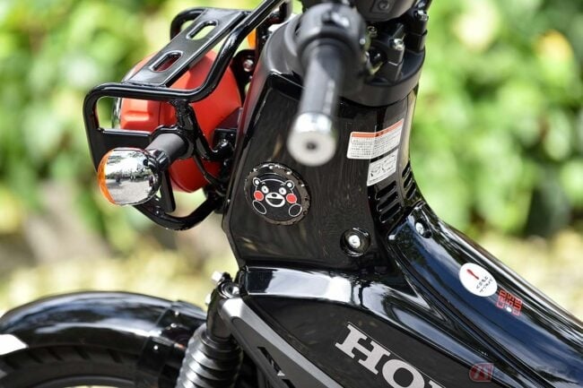 ボディカラーから受ける大人っぽさと、くまモンモチーフのかわいらしいデザインが絶妙にマッチした、他のクロスカブ110とは印象が異なる特別な1台です。