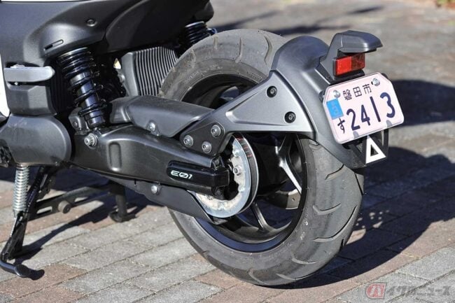 「E01」の車格は、ヤマハの125ccクラスのスクーター「NMAX」に近いものです。しかし、走らせてみると大きな違いがあります。その最たるものがハンドリング。とても軽く、小回りも利きます。電動バイクはそのトルク特性からか、Uターンが大の苦手である筆者であっても比較的ラクな印象です。そして「E01」には、その印象をより色濃く感じました。